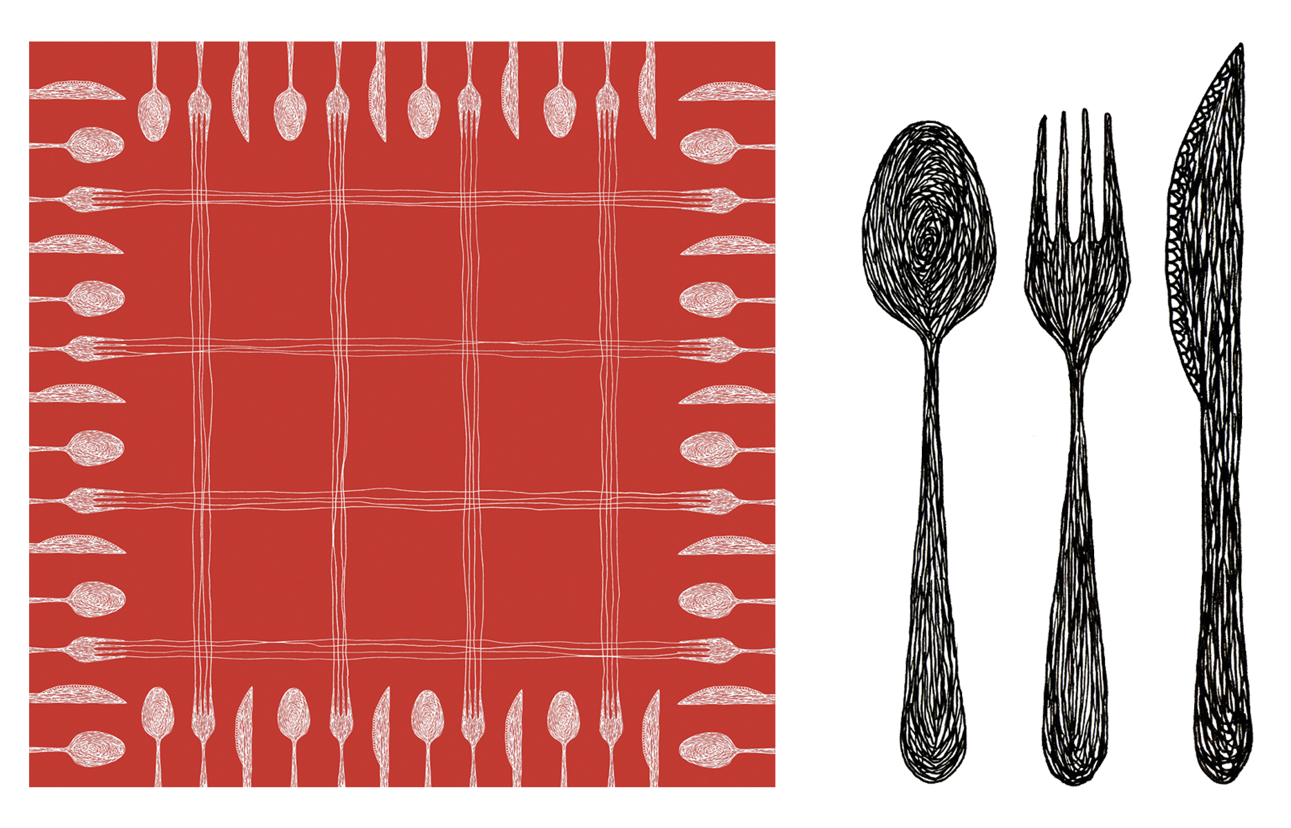 Pattern tablecloth In Tablecloth and napkin illustration design for We Canteen Pencil, pen, digital media 2014
